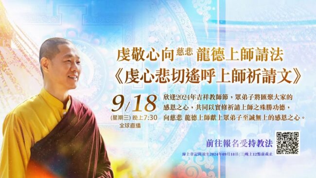 觀音山 2024年慶讚教師節,恭請慈悲 龍德上師9月18日傳授殊勝《虔心悲切遙呼上師祈請文》。 此部《虔心…