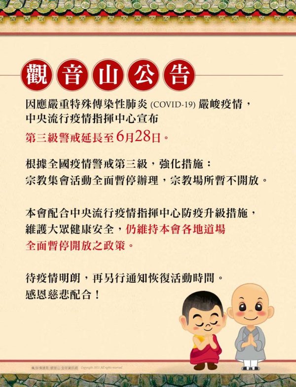 觀音山每週六《度脫薩迦疫癘經》法會迴向疫情消弭 延長至6月1…