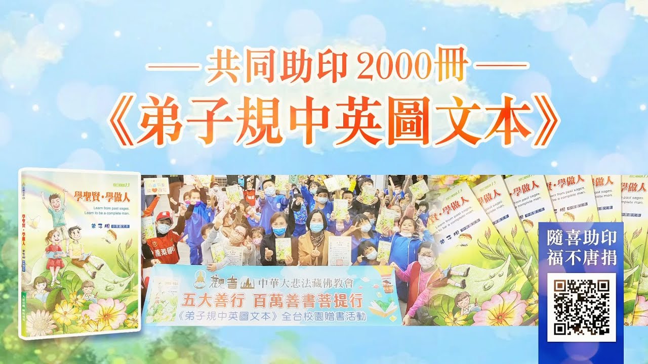 觀音山發起助印《弟子規中英圖文本》2000冊,歡迎十方善信法友隨喜護持助印,廣修福慧二資糧。助印佛經善書可與十方大眾廣結善緣,使更多人有良善的觀念,進而福慧增長、轉變命運,您所助印的每一本佛經善書,都將成為改變生命的力量!