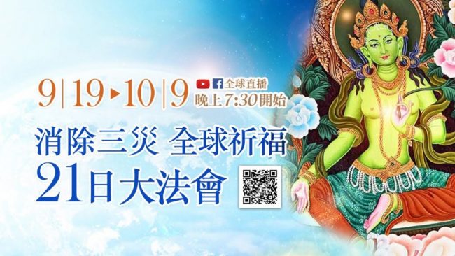 【9月19日-10月9日 消除三災──全球祈福21日大法會】 《大毗婆沙論》中云︰「中劫小三災現,刀兵,疾疫,…