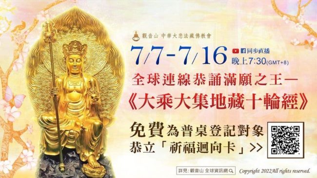 ?觀音山普度10天前行大法會—7月7日~16日《大乘大集地藏十輪經》全球Live直播 滿願之王ー所求諸願速得滿…