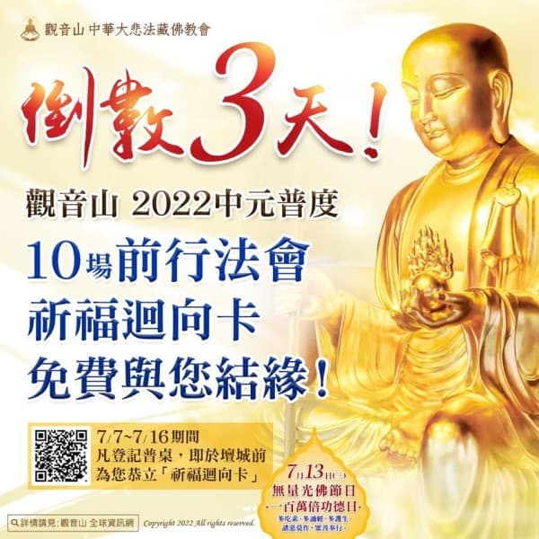 【倒數3天!】觀音山 普度10場前行法會─祈福迴向卡免費與您結緣 ▣ 直播場次表☞ https://bit.l…