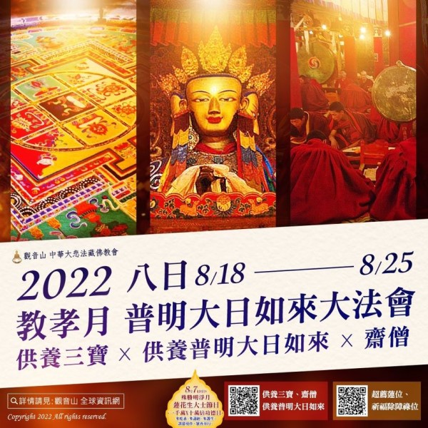 【供養三寶.供養普明大日如來.齋僧】2022教孝月 八日普明大日如來大法會   觀音山 8月18日~…