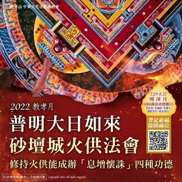 2022教孝月 普明大日如來砂壇城火供法會「祈福除障祿位」   ▌火供,是金剛乘最具加持、消業增福、…