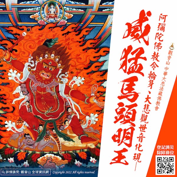 阿彌陀佛教令輪身、大悲觀世音化現—威猛馬頭明王 其他法會, 熱門文章GYS2022/12/16馬頭明王乃是蓮華部主阿彌陀佛的教令輪身(變化身),或由大悲 觀世音菩薩所化現,其形象有很多種。馬頭蓮華舞主,一…